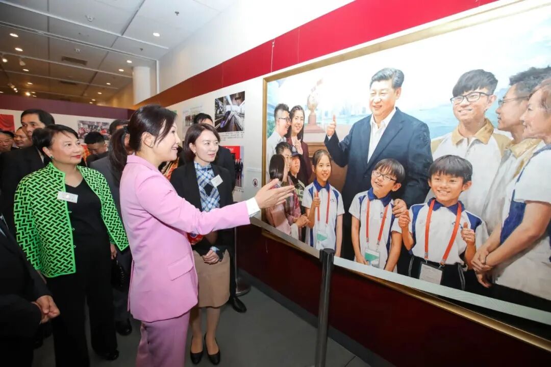 (圖為翟美卿女士為中聯辦副主任盧新寧女士講解畫作)